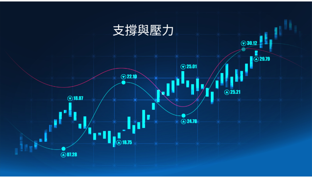 支撐(Support)與壓力(Resistance)代表著市場上買賣雙方力量的平衡點或轉折點。